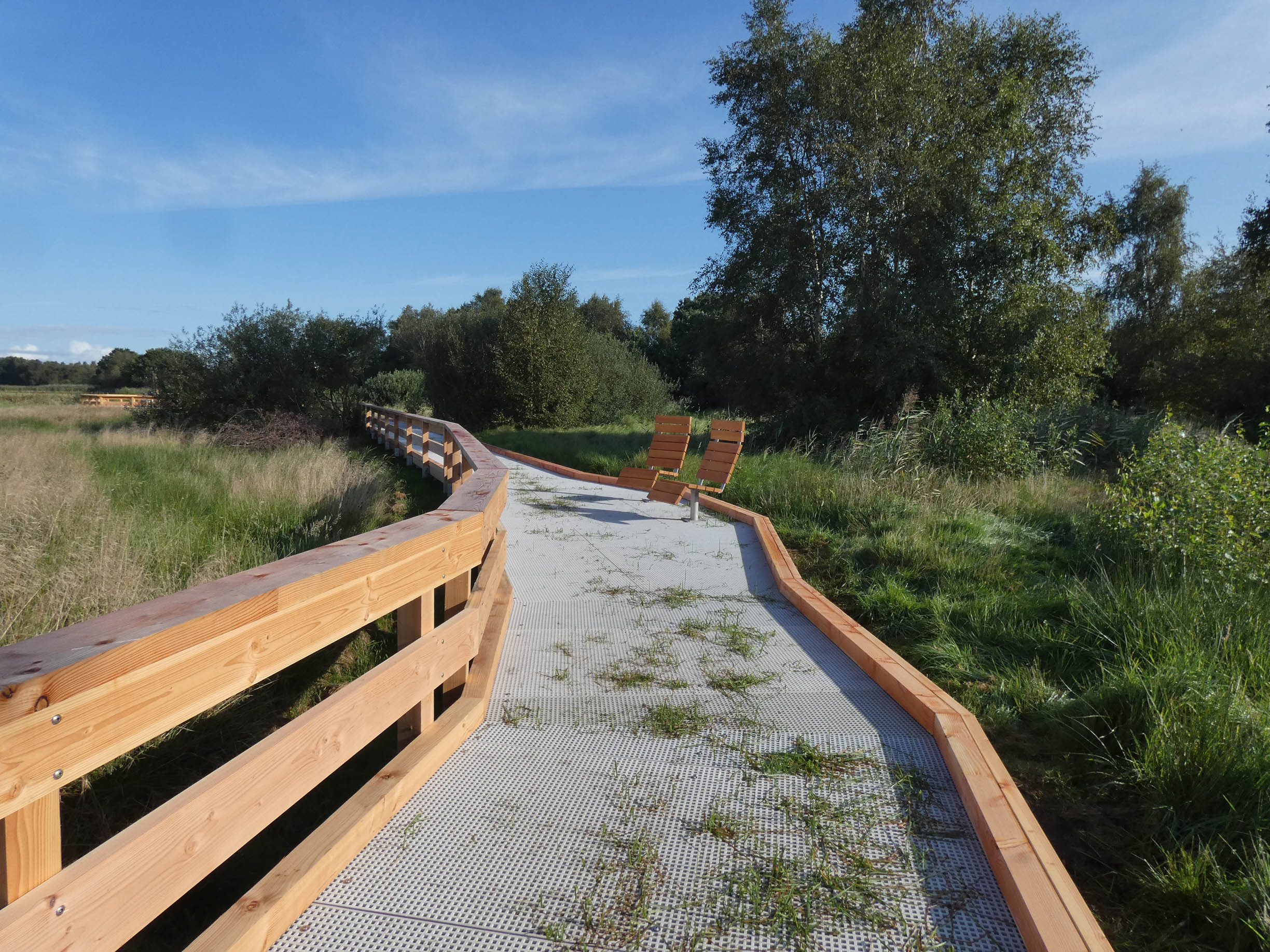 - Die Naturschutzstiftung des Landkreises Cuxhaven ist seit 2004 Eigentümerin dieses ca. 3 ha großen Grundstücks in der Niedermoorlandschaft. Im Jahr 2006 wurde hier bereits eine Naturerlebnisanlage mit Holzsteg errichtet, die im Jahr 2021 aufgrund akuter Baufälligkeit gesperrt werden musste. Die Baumaßnahmen für den Neubau haben im Jahr 2022 begonnen.