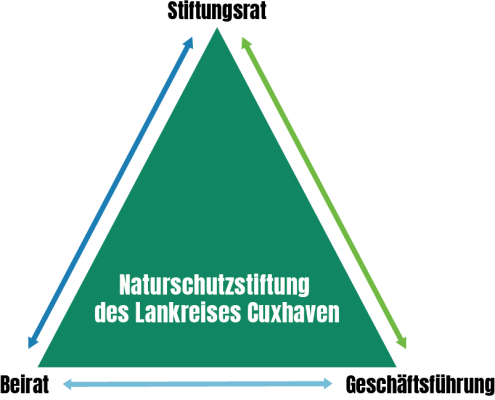 Die Naturschutzstiftung setzt sich aus drei Organen zusammen, dem Stiftungsrat, dem Stiftungsbeirat und der Geschäftsführung. Diese drei Organe greifen wie in der Abbildung eng ineinander und setzen sich wie folgt zusammen: